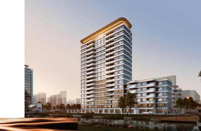 加之建筑顶部的金冠起伏,与景观河交相辉映,串联成金色丝带东西贯通,更是凸显了本项目的高标准、高品质的居住体验。