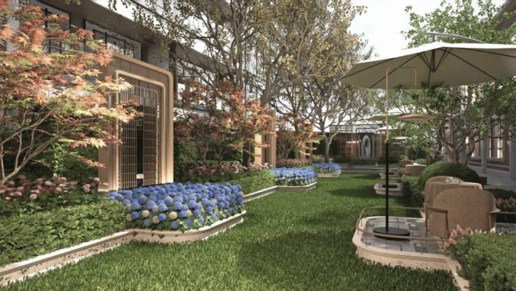 特别打造的海派生活轴三花园:林下会客、儿童活动区、舒享草坪,将礼仪归家、亲子互动、休闲观景、艺术会客等功能汇聚于整个中轴线上,在空间上聚焦,在功能上力求满足不同年龄和客群的需求。