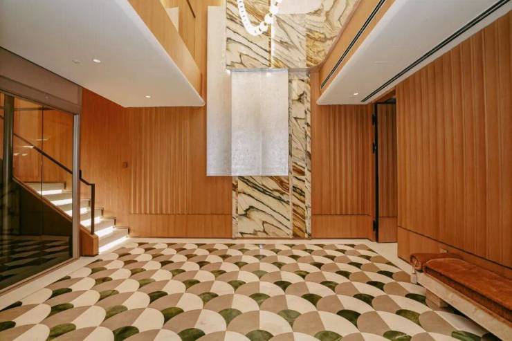 项目在产品细节方面也是采用匠心精神,把控细节品质。立面采用上海传统砌筑“梅花丁”方式;首层搭配工艺最复杂的元宝缝、定制了中国城市雕塑家协会理事专属山花样式,精雕石材,铝板,入户门、尊崇定制门牌……满满传世大宅级细节品质!