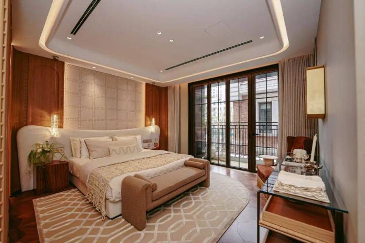 同样大面宽落地玻璃南向长辈套房,以零台阶平层动线呵护长者起居,晨光入室、推窗见园,让孝心落地于每一寸空间细节。
