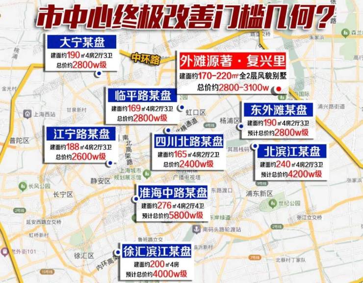 纵观整个中环内热门置业板块,这样的预算大多只能在静安、虹口或杨浦买到约190m²以内的高层住宅产品,按照高层住宅普遍约75%的得房率来看,最多只能拥有套内面积约150m²不到的实际使用面积……