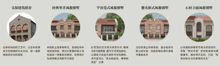 「外滩源著·复兴里」设计共有5大风貌立面类型:经典里弄别墅、平脊范式别墅、鎏光新式别墅、石材立面别墅,1.13超低容积率社区的品质生活无出其右!