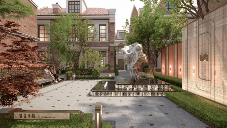 景观布局上,以老上海生活场景为根本来演绎空间,形成“三轴两门三院三花园的”空间布局,构建出两个礼序归家轴和一个海派生活轴。