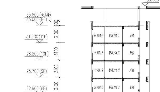 项目最底层及地铁双浦车辆段,上盖后首层为车库,层高约5.9米,架空层层高4米,房源层高3.1米。