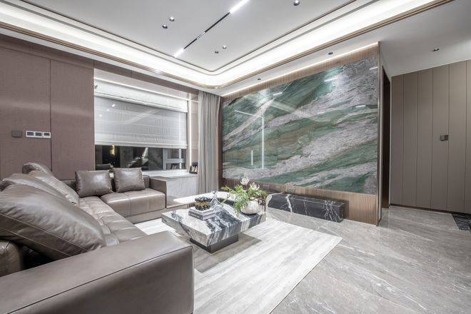 理石肌理与白色调交织相融,构筑起通透基底,焦糖色家具自带温和诗意,与窗外城市景致遥相呼应,共同勾勒出生活的丰盈画卷。