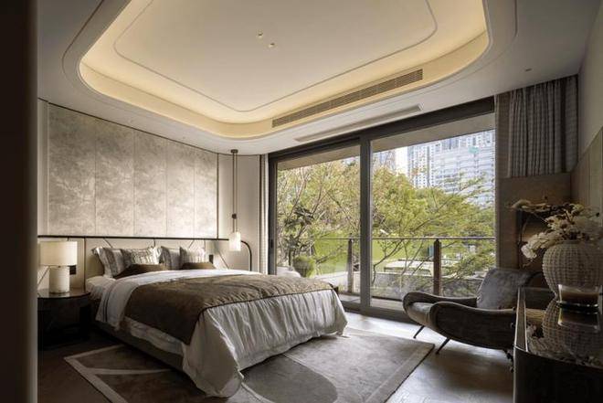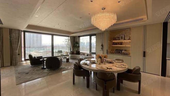 这套下叠南向约9.3米超大面宽,搭配约3.3米的奢阔层高,客厅与南向阳台打通,一层特别规划南向老人套房,无论是采光、视野,都堪称完美。