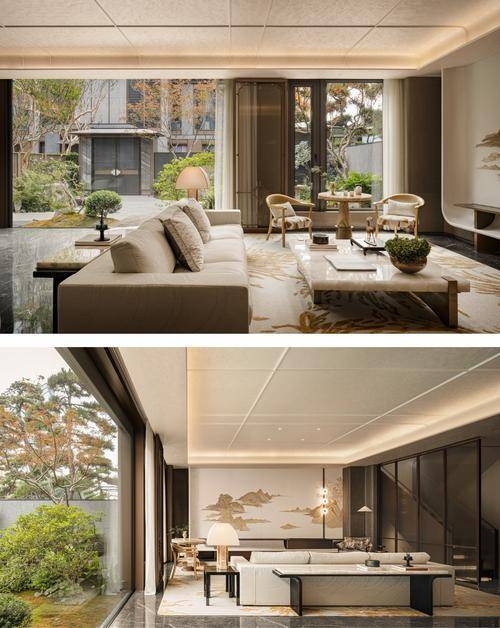 近460㎡的下沉式庭院,精选太行山金景石堆叠成小山丘,溪水,并移栽岭南珍贵的古桩铁冬青和中华原生乌桕树,寓意“聚财守业”!