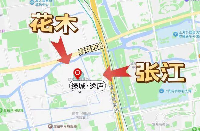 打开地图可以发现,绿城·逸庐与张江直线仅约500米,直接承接4.5万高知人才的高端居住需求!而且与花木仅有一路之隔!(高科西路以北即是花木街道)可谓是花木联洋后花园,张江西大门,享受双重规划利好!