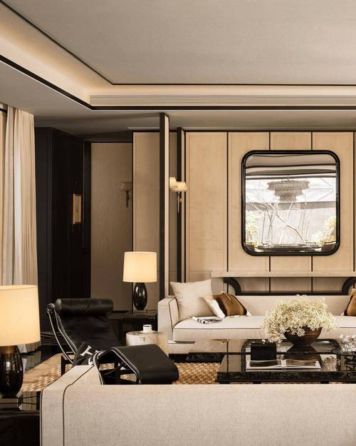 入户开始,类梯入户设计,搭配专属电梯厅,私密感拉满。约4.1米的客厅开间与约1.6米进深阳台相连,视野奢阔。