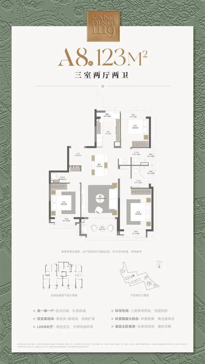 最新消息:康定壹拾玖三批次加推123-238㎡3-5房在售,均价17.18万/㎡,项目作为静安老城区稀缺产品,在细节及产品力上受到广大上海顶豪客户的喜爱,目前少量房源在售,样板间线上预约中!
