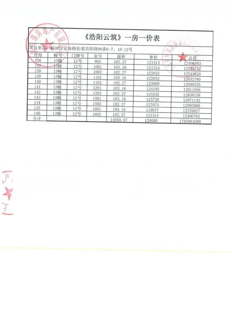 最新一房一价表: