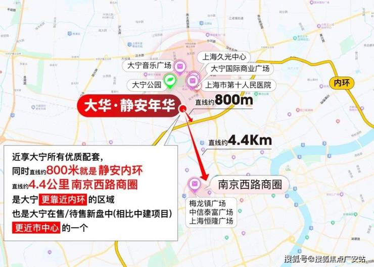 大华·静安年华可谓双王炸区位,直线800米贴脸静安内环,一脚油门就能杀进上海城市动脉,畅达全市核心节点;约4.4公里直插静安寺-南京西路心脏,直接把全上海顶流的繁华,变成你家的「日常生活」。