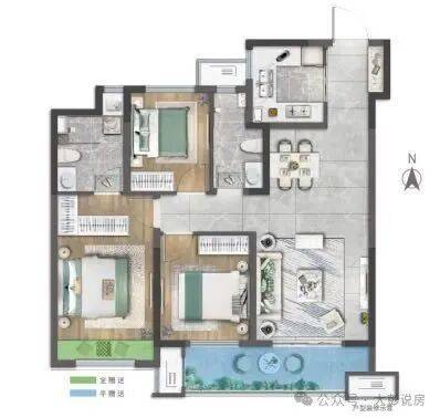 建面约101/106㎡全能三房,总高18层小高层