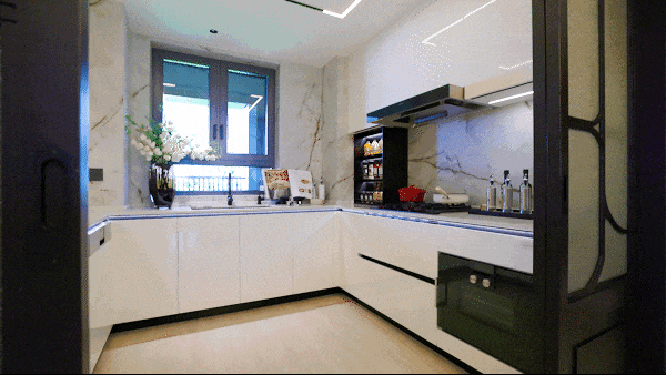 厨房配置丰富,甄选嘉格纳四件套(油烟机+燃气灶+洗碗机+蒸汽烤箱),满足多元化烹饪需求,做饭得心应手;洗锅时,弗兰卡可抽拉龙头能冲净锅沿油污,威乃达橱柜的分层收纳,让餐具、调料各归其位,找东西不用翻来翻去.