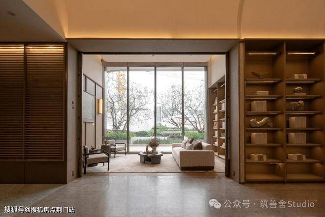 漆砚260㎡户型:户型参考漆砚制作方式,以“玉德”显质地,以“金声”隐赞誉,主卧吊顶还原砚台之形,以漆砚般闪耀琢序空间。