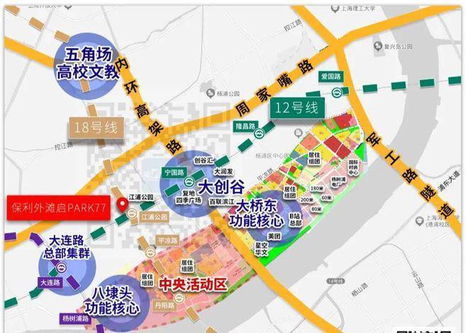 同时,在保利外滩启PARK77的左边,是杨浦内环滨江科创核心区的另一重要组成部分——大创谷功能区。