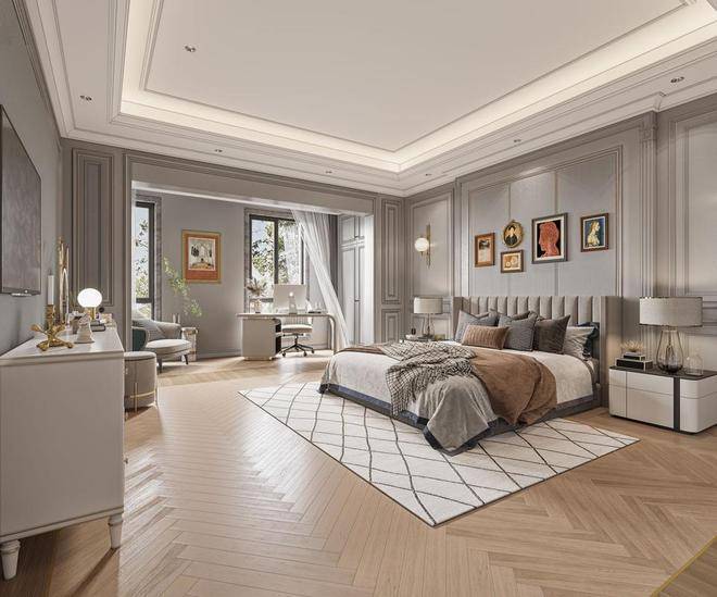建筑风格:全石材干挂立面,法式对称几何设计,纯排屋社区(含双拼、四联排)。