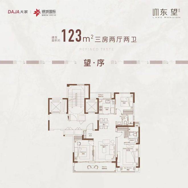 123㎡三居室:三开间朝南,6.9米双面宽阳台,总价约300-350万元