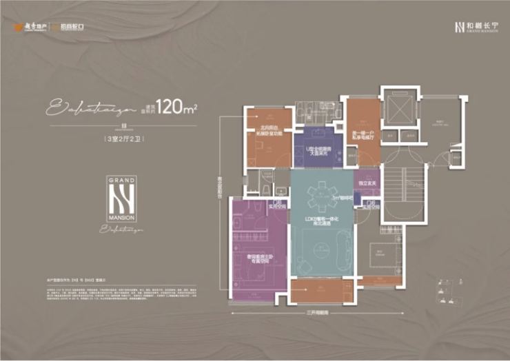 建面约120㎡户型整体采用了罕见的多阳台+贯通梯一梯一户设计!是双新政后内中环的首个!得房率也将高于双新政后同样楼层一梯一户的产品!单凭这两点,已然超前于绝大多数如今的产品!