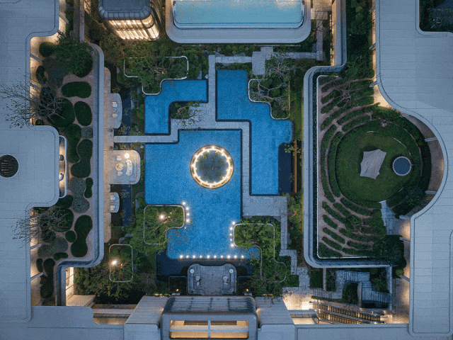 保利是将高级商业空间灰度空间的营造方式,从外到内,铺设到了一个住宅社区方方面面