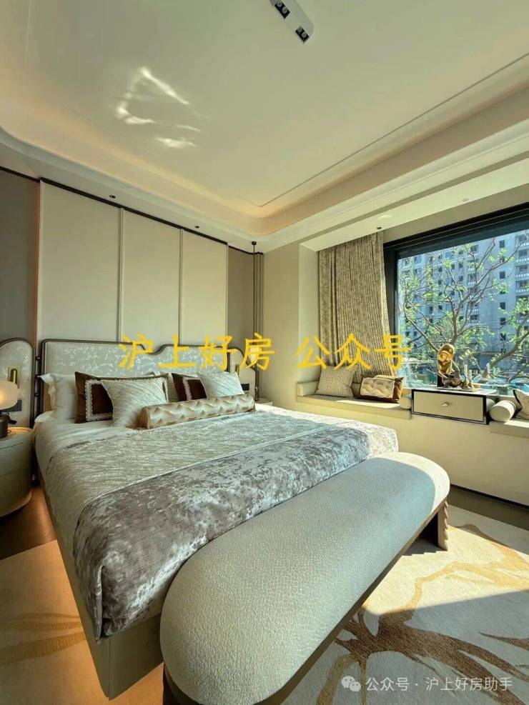 主卧更别出心裁地设计了 两大270°转角飘窗,在同面积段产品中实属罕见,瞬间将睡眠区的景观层次与奢华感拉升到新的高度。
