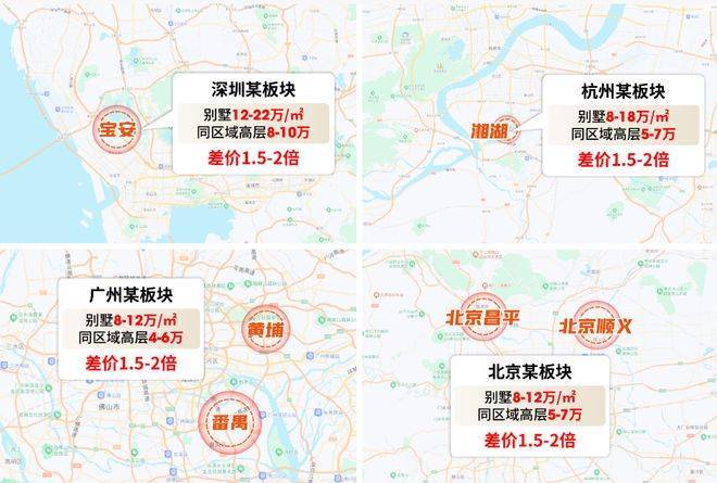 我调研过国内多个主流城市,别墅与高层的价差有规律: