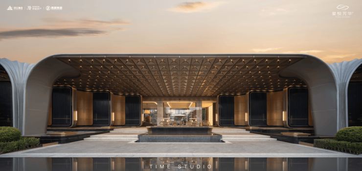 大门还是不错的,延续着卷大门的风格,一个刚需盘能有这样的大门已然相当不错了。萃取东方礼制精髓,沿东西向主轴设置多重归家院落,形成主入口至迎宾水院及度假水池为一体的礼序归家轴。层层递进的空间,在步移景异中,营造出多重归家仪式。