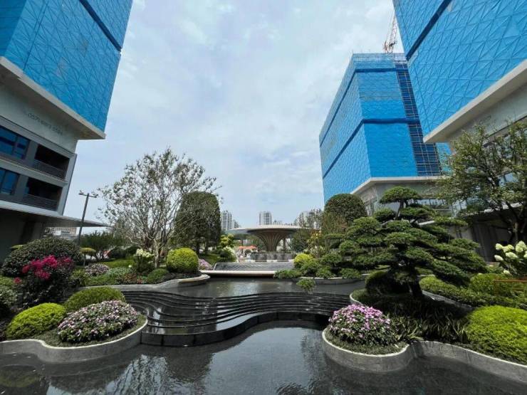 园林景观精心打造“合悦绽放,漫岛芳华”主题景观,营造艺术氛围,微度假体验与优雅生活空间。从细微之处着手,匠心独运,构筑隐奢美学的视觉盛宴。景观设计灵感汲取自CHAUMET这一知名珠宝品牌的精髓,以“珠宝花卉造型”为核心设计理念,将大胆创新与华丽风格融入景观创作,打造出独具匠心的珠宝风格景观设计体系。