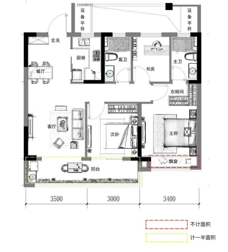 建面约92㎡家配图
