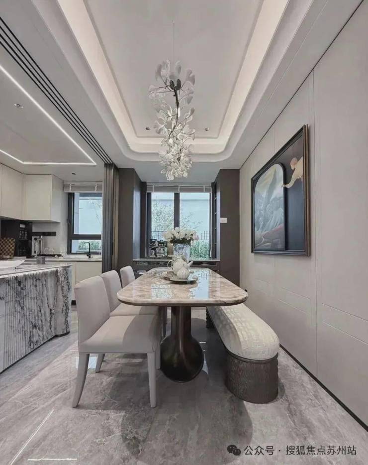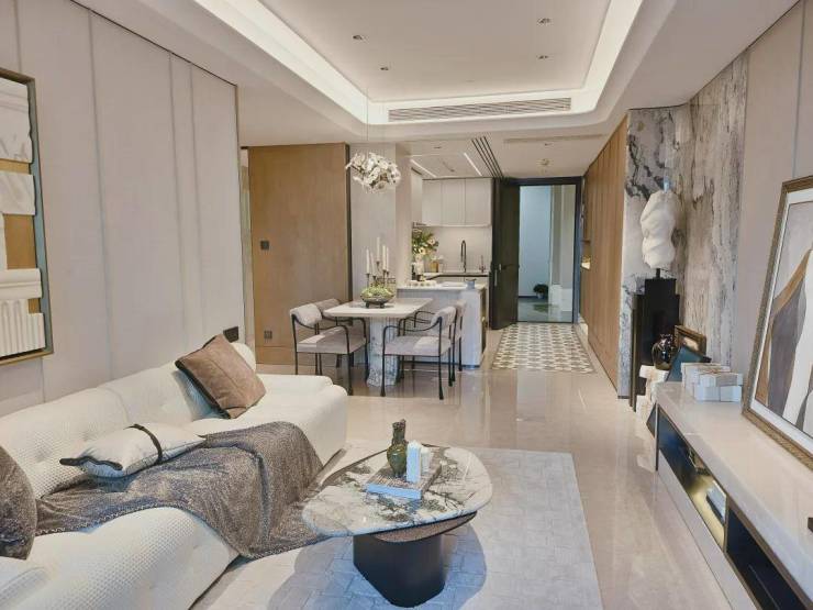 【海上·清和玺】希望业主的每一次归家,都能有属于自己的社交空间。整个前厅的接待空间不是一个过渡空间,而是一个真正为归家营造惬意分享的生活场。