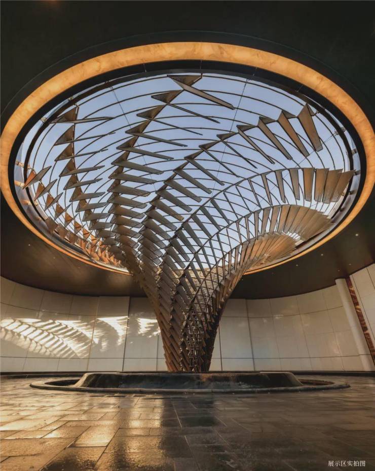 海派漩心装置采用了300余枚鳞片定制,超过2000次折叠锻造,营造出美轮美奂的冰裂纹视觉图样,让每一个金属片都有不同弯折角度和形态,从而呈现整体效果从平面到立体的变化,极具艺术品味。