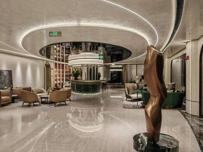 N+奢石铺装,从地面到公区,地下三层入户大堂荟萃普拉达绿石材、温哥华海石材、东方白石材、莫奈灰石材,特殊玻璃等,大手笔低营造调奢华的空间气场。