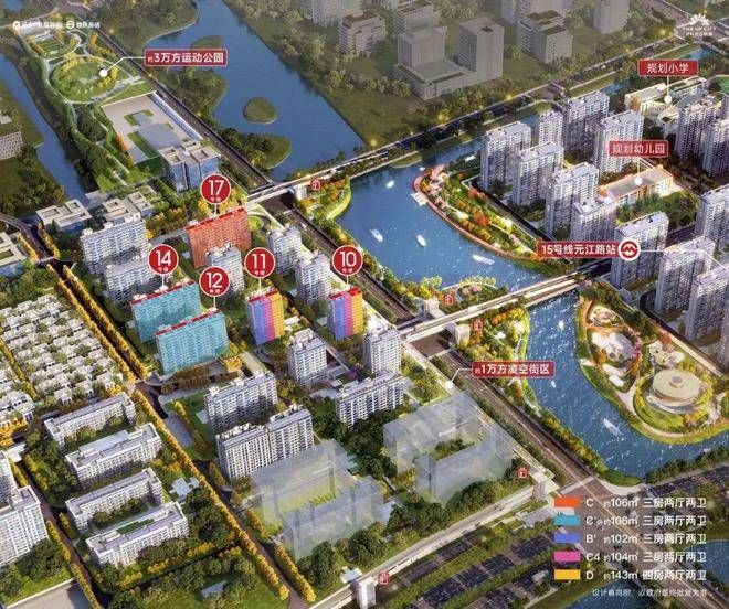 这样带来的归家动线将非常的丰富,从15号线地铁口出来,穿越近20万方的滨水公园,尽享上海最美归家路。