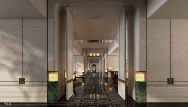 更是汲取湄南河四季酒店、安达仕酒店等景观设计灵感,将架空层与室外景观庭院融合,采用开放式布局,形成“室内外交融”视觉通透感。