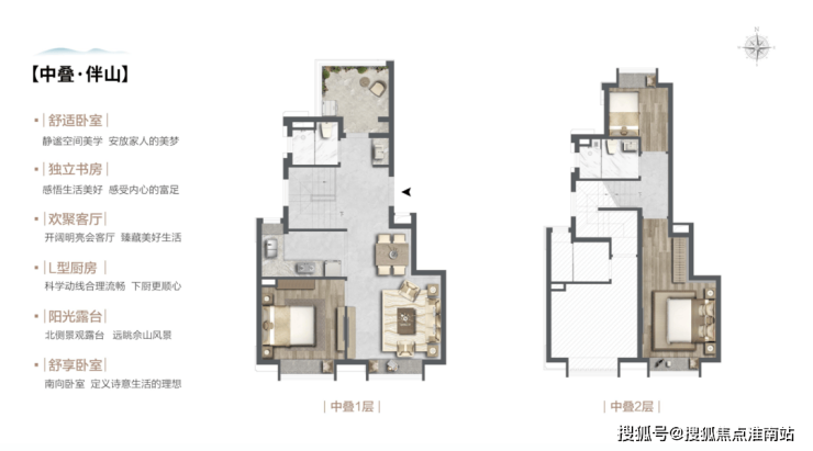 约90㎡中叠·伴山,上下双层创新设计,3房2厅2卫,更合理的空间规划和创新户型,实现生活场景分离,相互独立又彼此呼应,有效解决现代人居的主要矛盾。