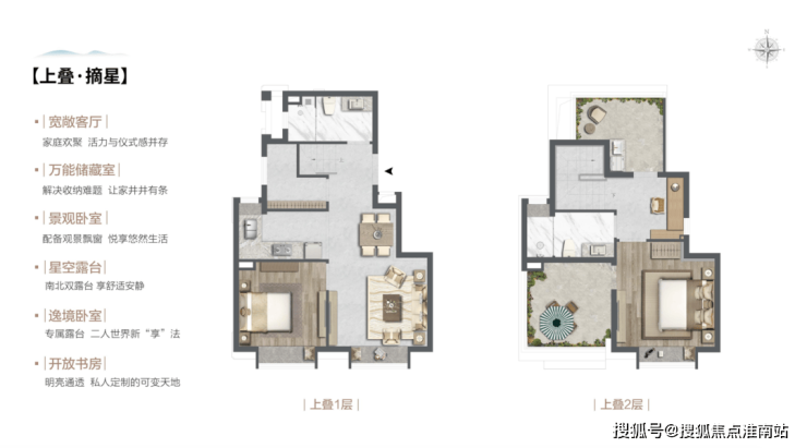 佘山望有上下多层的户型,其中建面约90㎡叠墅【山屿墅】,共有上、中、下叠,均是三房空间,上下分境,充分照顾二人世界、三代同堂的不同生活习惯。独立入户,弥补了大平层密集交错的社区环境短板,舒适感和尊贵感深度彰显。