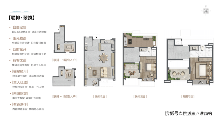 户型简评:南北入户花园;三开间朝南,采光充足;5.1米挑高地下室,灵动可变。