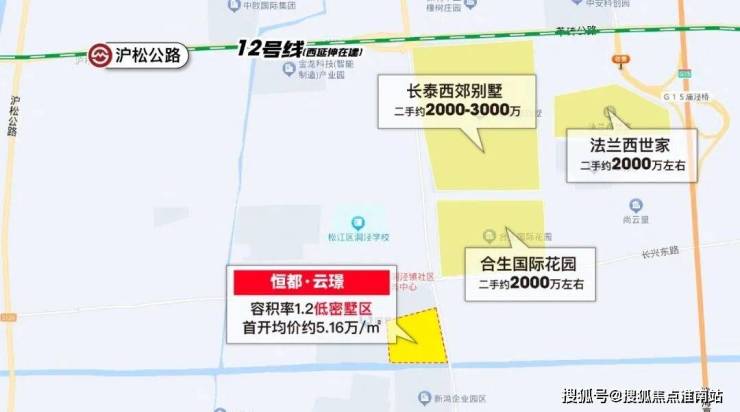 12号线西延伸沪松公路站旁(在建中),容积率仅约1.2的恒都·云璟火热认购中!主推建面约91㎡洋房和建面约150-160㎡别墅,均价约5.16万/㎡!