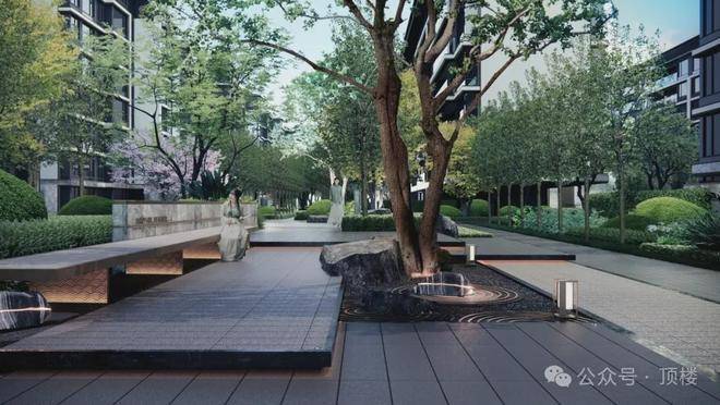 社区以“东方礼序”为内核,打造九重归家动线:从双层酒店式门楼、无风雨游廊,到单元入户大堂的檐下空间,每一步皆是对传统园林“可游、可居、可赏”的致敬。