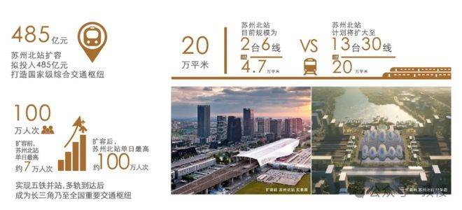 随着苏州北站扩容升级(规划投资485亿元,站房面积扩至20万㎡,13台30线),这里将成为“五铁交汇”的超级枢纽,23分钟直达上海虹桥,30分钟覆盖长三角主要城市,比肩上海虹桥的能级。