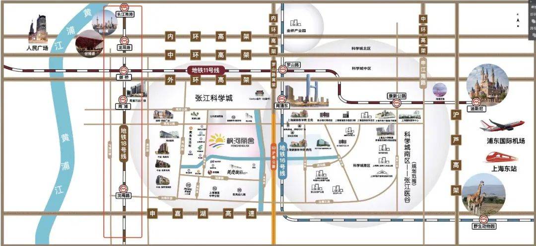 地铁:距离16号线周浦东地铁站约2.5公里,终点站龙阳路地铁站可换乘2号线,直达人民广场,南京东西路等大型商业圈,距离18号沈梅路地铁站约3.4公里,可换乘11,7,13,等线路地铁。