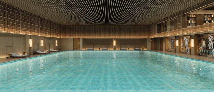 配置半标泳池,以更加开阔的尺度,定义国际社区会所的空间气度,还在设施细节、设计巧思与使用体验上层层打磨,成为兼具功能性与美学感的核心社交场景。