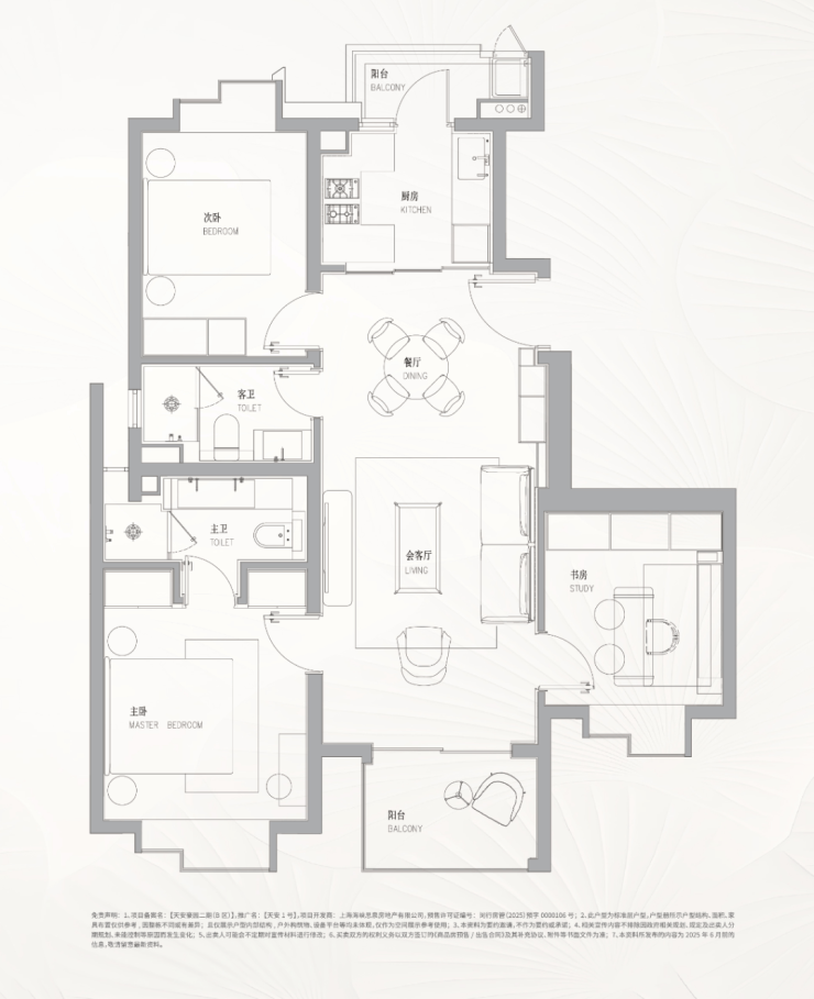 主卧大套房设计,主卫双台盆带浴缸配置,尊崇感十足!