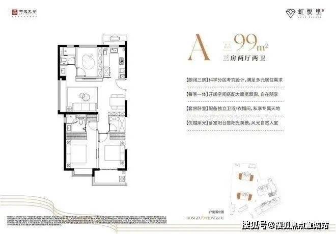 产品方面,中建虹悦里整盘248套房源一次性入市,从建面约79㎡精致2房,到建面约91-99㎡轻奢3房,多元户型总有一个适合你。