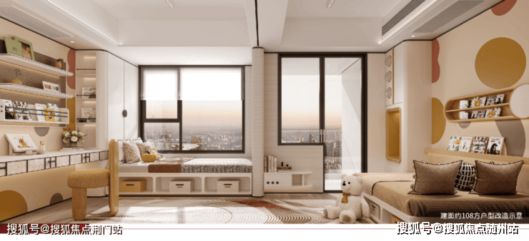 作为“主力王牌”产品,建面约108㎡户型采用去过道化设计,空间灵活可变,可打造开放式厨房拓展家庭场域,适合年轻夫妇;也可将北向书房与次卧融合,变身双孩套房,灵活适应家庭成长需求。