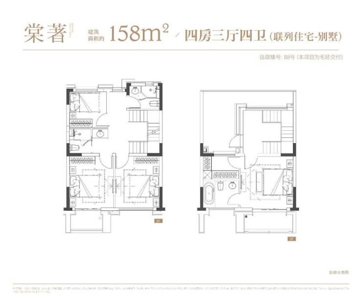 项目容积率低至约0.75,仅32套叠墅、109套联排,真正的限量版产品!主推建面约139-142㎡叠墅、建面约158-165㎡联排别墅,实景准现房销售。