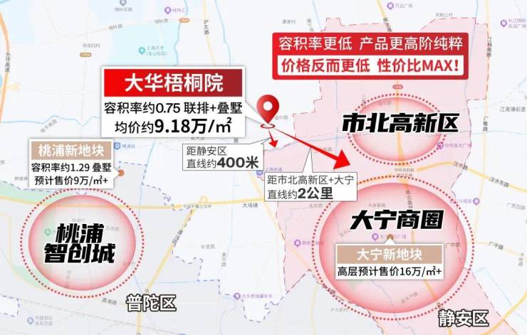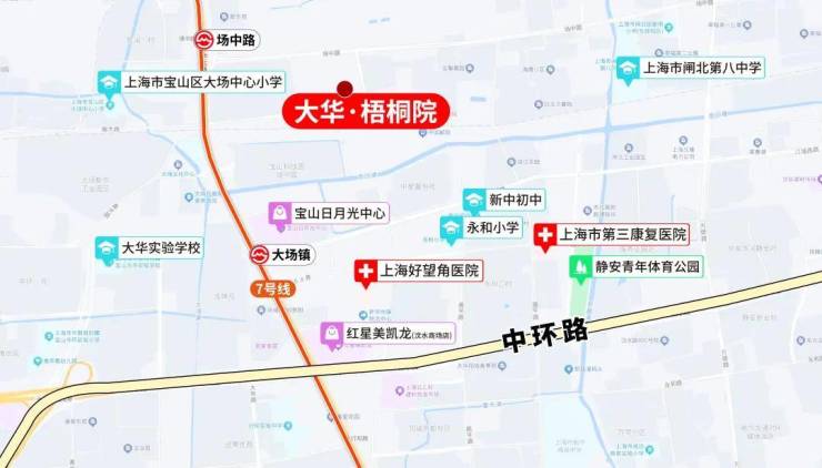大华·梧桐院是宝山、静安、普陀的核心交汇处,南临静安大融城、大宁板块,向西是桃浦智创城。