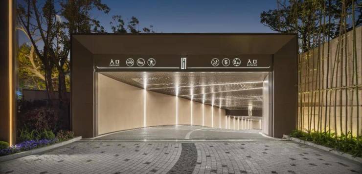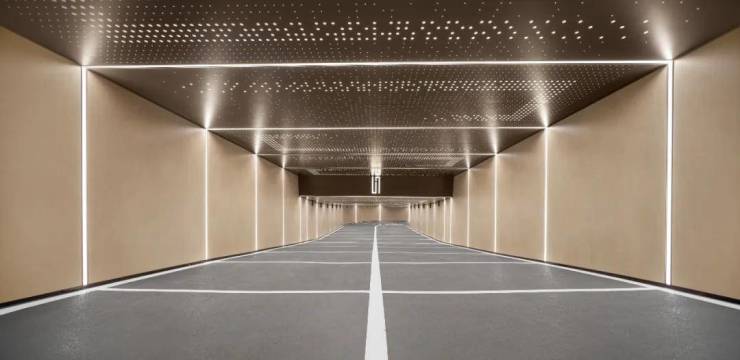 项目地下精装车库非常奢雅,汽车坡道采用氛围照明,缓解光环境变化,搭配星空顶造型彰显独特。