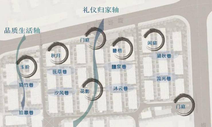 项目定制八巷生活场景,包括流光巷、涵秋巷、沐云巷、酌泉巷、汐风巷、抚草巷、拾翠巷、猗竹巷。
