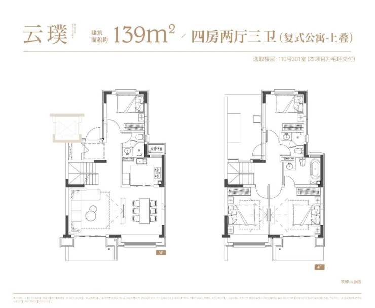 项目叠墅户型有建面约142㎡下叠,建面约139㎡上叠。